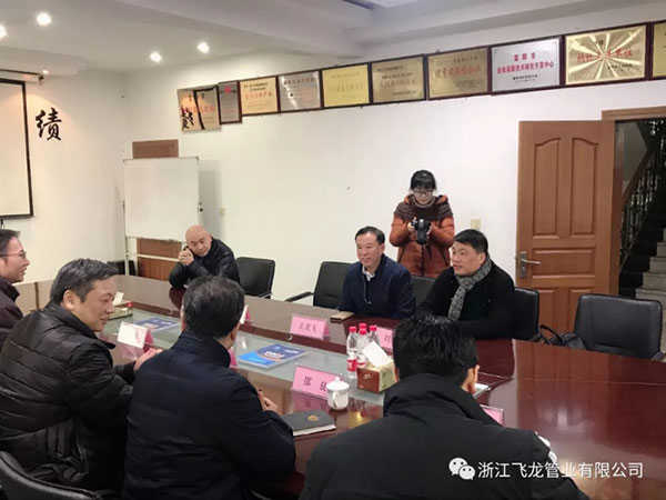 2019年1月2日下午,杭州市政協副主席胡偉在富陽區政協副主席邵良等陪同下,來到浙江飛龍管業有限公司調研。
